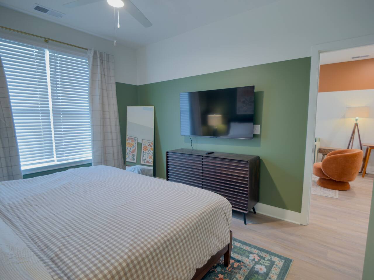 🏡 The Space Step into a thoughtfully designed home featuring: - king bed with cozy linens and soft lighting for restful sleep - warm, neutral living area with plush seating and Smart TV - dedicated desk/workspace for remote work or study - full kitchen with full-size appliances and all the essentials for home cooking - large bathroom with modern fixtures and plenty of space to unwind - full-size washer and dryer, ideal for long-term comfort Natural textures, layered fabrics, and soft tones make this apartment a relaxing escape after a busy day. 🌟 The Building Stay in a newly built luxury complex offering all the amenities you’d expect from upscale urban living: Resort-style pool and sundeck Modern gym and fitness studio Coffee bar and resident lounge Private meeting rooms and coworking areas Secure access and on-site parking options 🚶♀️ The Neighborhood Located in Five Points South, one of Birmingham’s most walkable and character-filled neighborhoods: Minutes from UAB Hospital, Children’s of Alabama, and Downtown Birmingham Surrounded by local cafés, cozy restaurants, and boutique shops Convenient access to I-65 and public transportation 💼 Perfect For Travel nurses and medical residents working nearby Corporate travelers or remote workers looking for a long-term stay Couples seeking a quiet, homey space near the city 💫 Why Guests Love It Guests love the calming atmosphere, clean design, and peaceful energy of this home — all while enjoying access to premium amenities and Birmingham’s best location for extended stays. Parking is provided in a secure garage. Guests understand when booking that vehicles must be under 7ft tall to fit inside the garage.