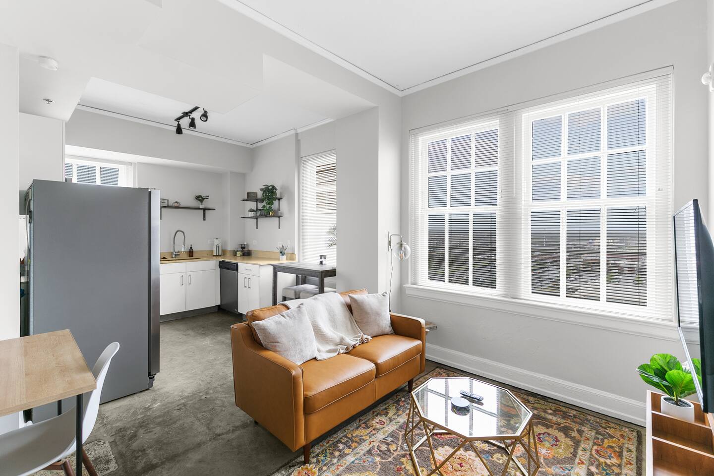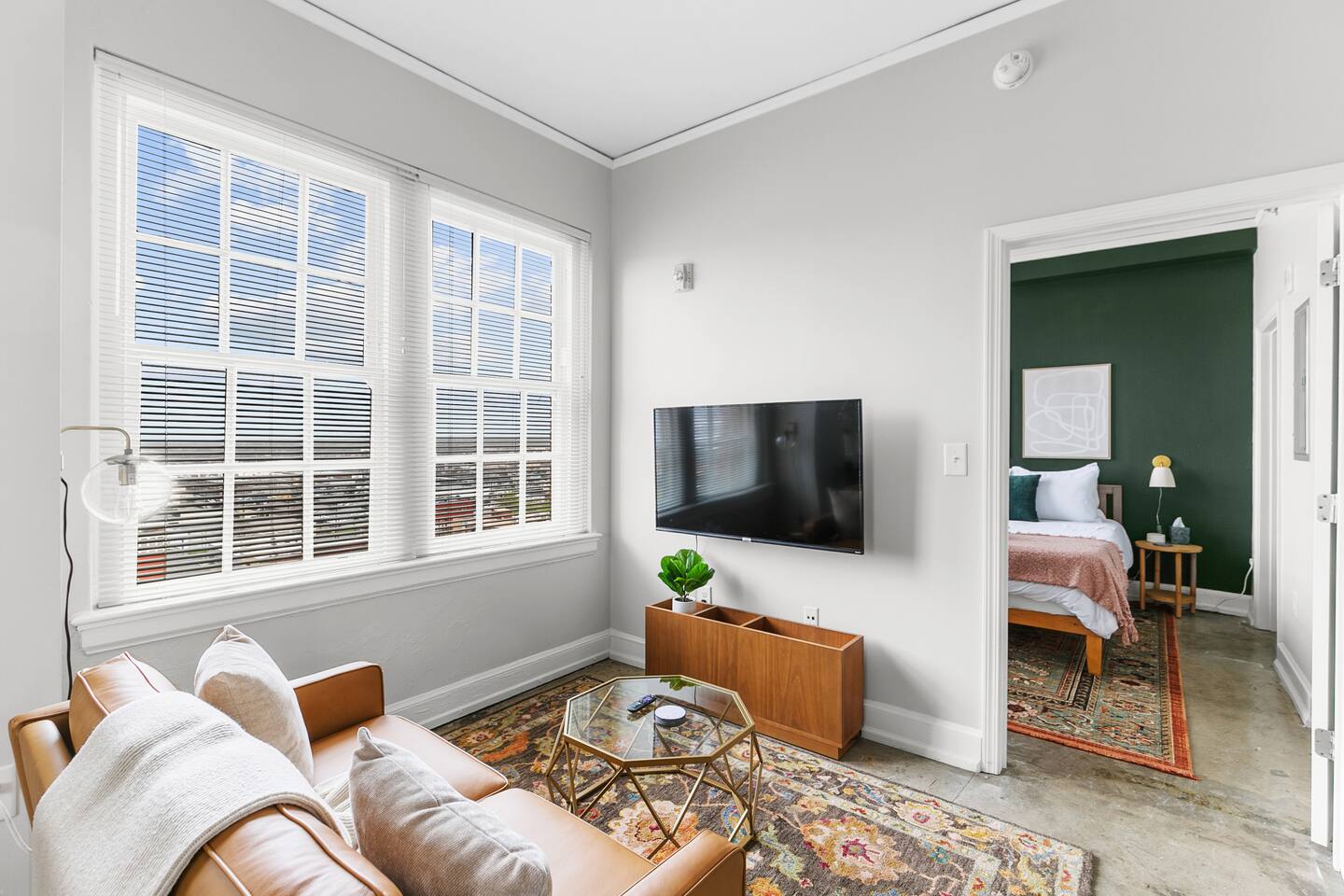 Enjoy the comfort of this stylish downtown Birmingham apartment, conveniently located within walking distance from excellent restaurants, coffee shops and bars — the perfect location for your long-term remote work stay, vacation, or long weekend. * Dedicated workspace * Fast WiFi * In-unit laundry * 50" Smart TV with Apps * Fully equipped kitchen * Free parking on property * Gym, theater room, convenience store located in the building * Self check-in * On 24/7 Site Security